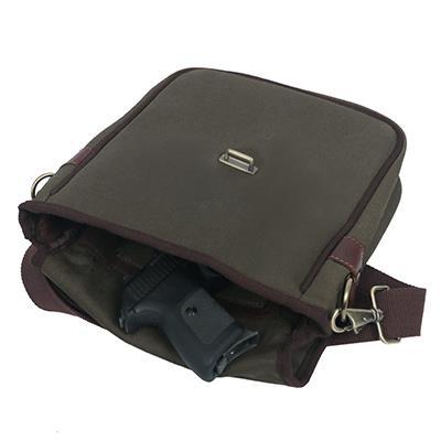 Bolsa masculina de lona e couro de alta qualidade. Pode conter várias coisas, como chaves de carro, carteiras, telefones celulares, relógios e muito mais. Ele também possui uma característica muito especial - pode ser equipado com uma pistola para se proteger em caso de perigo ou ameaça.